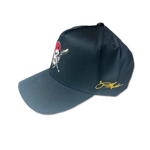 This 5 Panel Snapback with Our Smooth Pirates Logo Embroidered on the Front of the cap and our Sungless and script logos on the side panels makes a great hat to complete that fit !