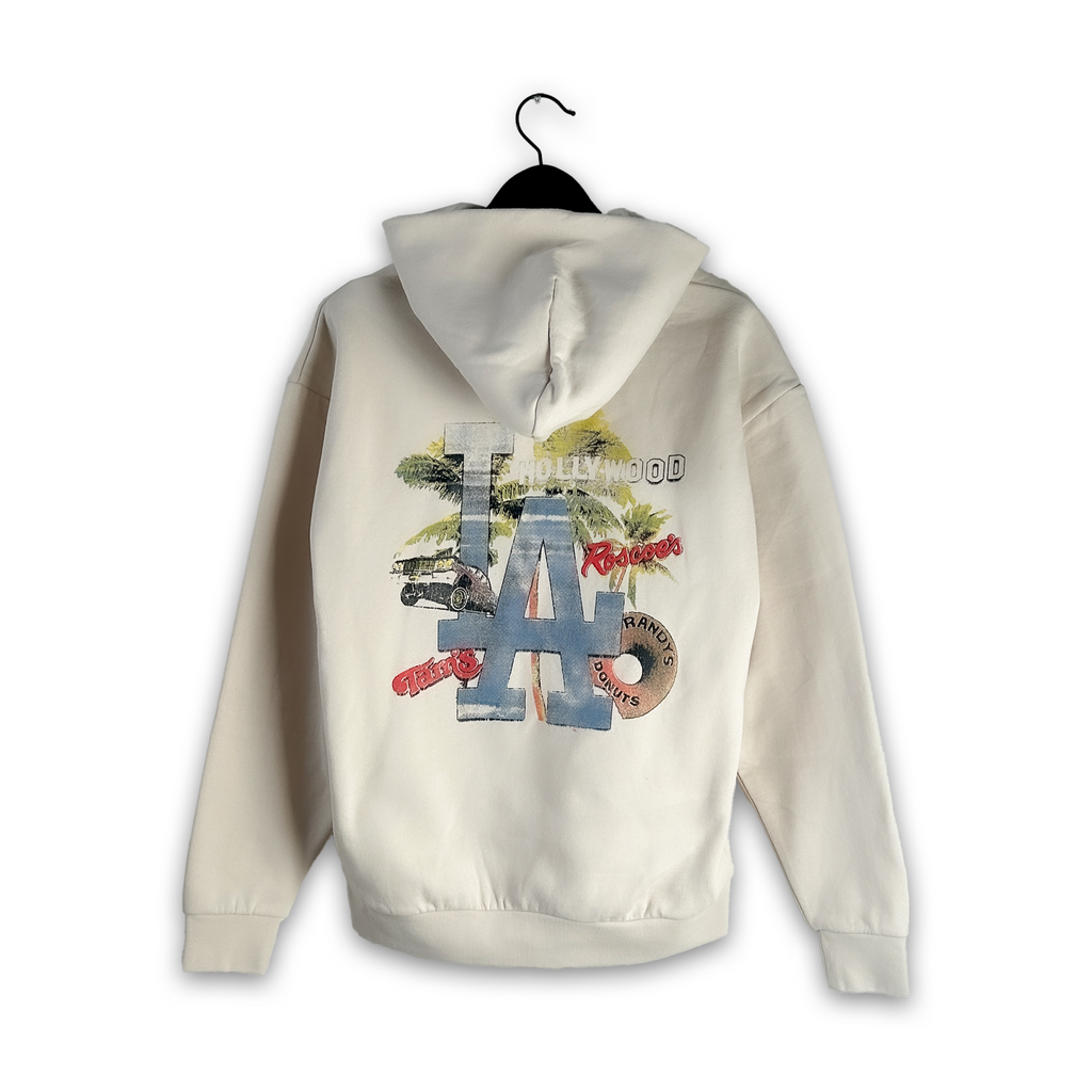The front features our Smooth logo, while the back boasts the LA logo. A screen print finish gives this hoodie a premium look and feel. Made with 80% cotton and 20% polyester, this hoodie features a premium mid-weight 8.5oz./280gm 3-end fleece and 32 singles face yarn for ultimate comfort. The fabric has been per-laundered to prevent shrinking and the design includes a boxy fit with a drop shoulder, no draw-cord, and a double layer 1-piece hood. All seams are blind-stitched for a clean and simple design, while the cuffs and waistband feature 350gm 1x1 ribbing for added durability.