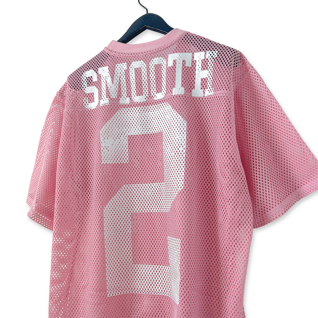 Cheer on your favorite team in style with the fun and lively SmoothCats Football Jersey! Bright screen-printed cats football logos decorate both front and back, with a bold "2 Smooth" on the back. Made from airy mesh fabric, it ensures you stay cool whether you're cheering from the sidelines or hitting the field. Each jersey is made to order just for you.