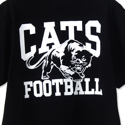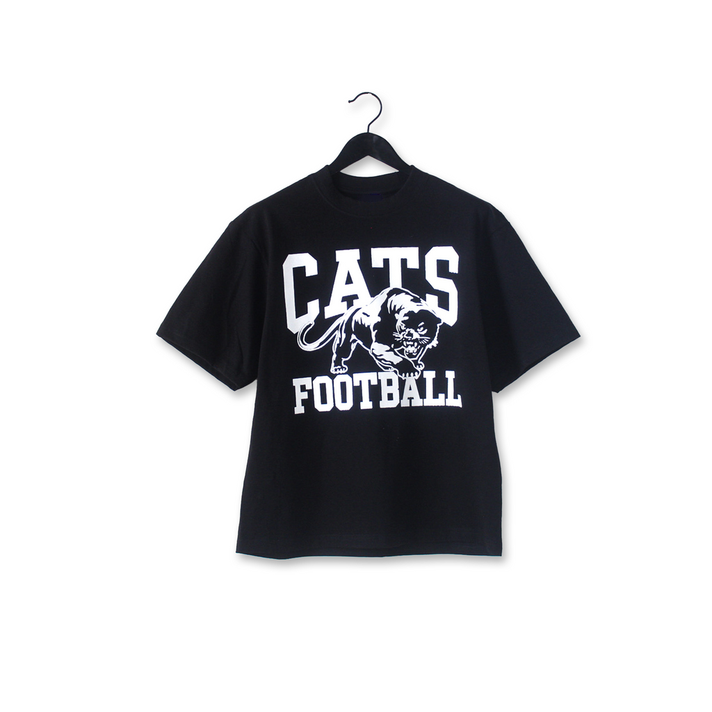 Sport the SmoothCats Football Tee with pride! The front shows off a screen-printed Cats Football logo, while the back features a bold number 2 and the name "Smooth." Crafted from durable heavyweight USA cotton with a trusty lycra collar, it delivers unbeatable comfort and long-lasting wear. Enjoy the fun vibe of slightly oversized sleeves, a regular fit, and a trendy cropped cut—your new go-to for street wear style.
